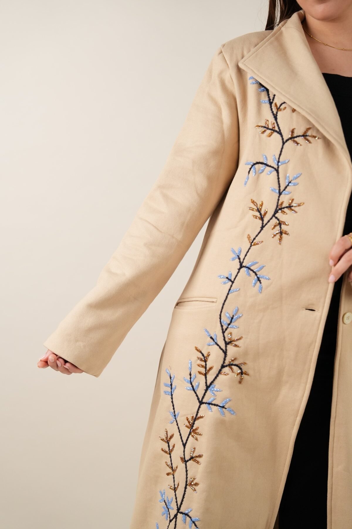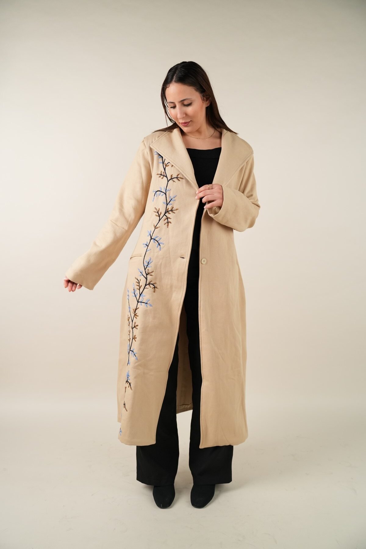 Handmade beige coat with a unique one-size design, crafted from premium materials for style and comfort. Perfect for any occasion.