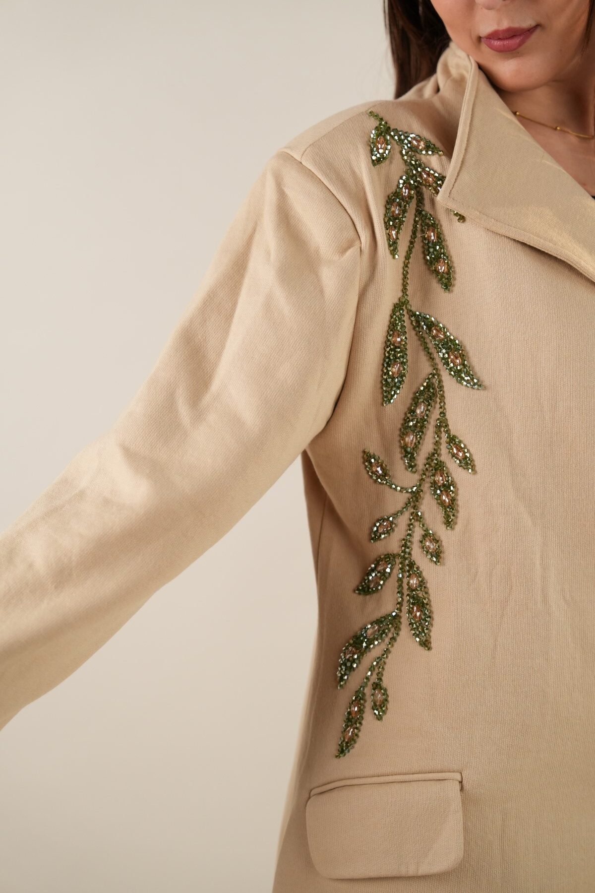 Handmade beige coat with a unique one-size design, crafted from premium materials for style and comfort. Perfect for any occasion.
