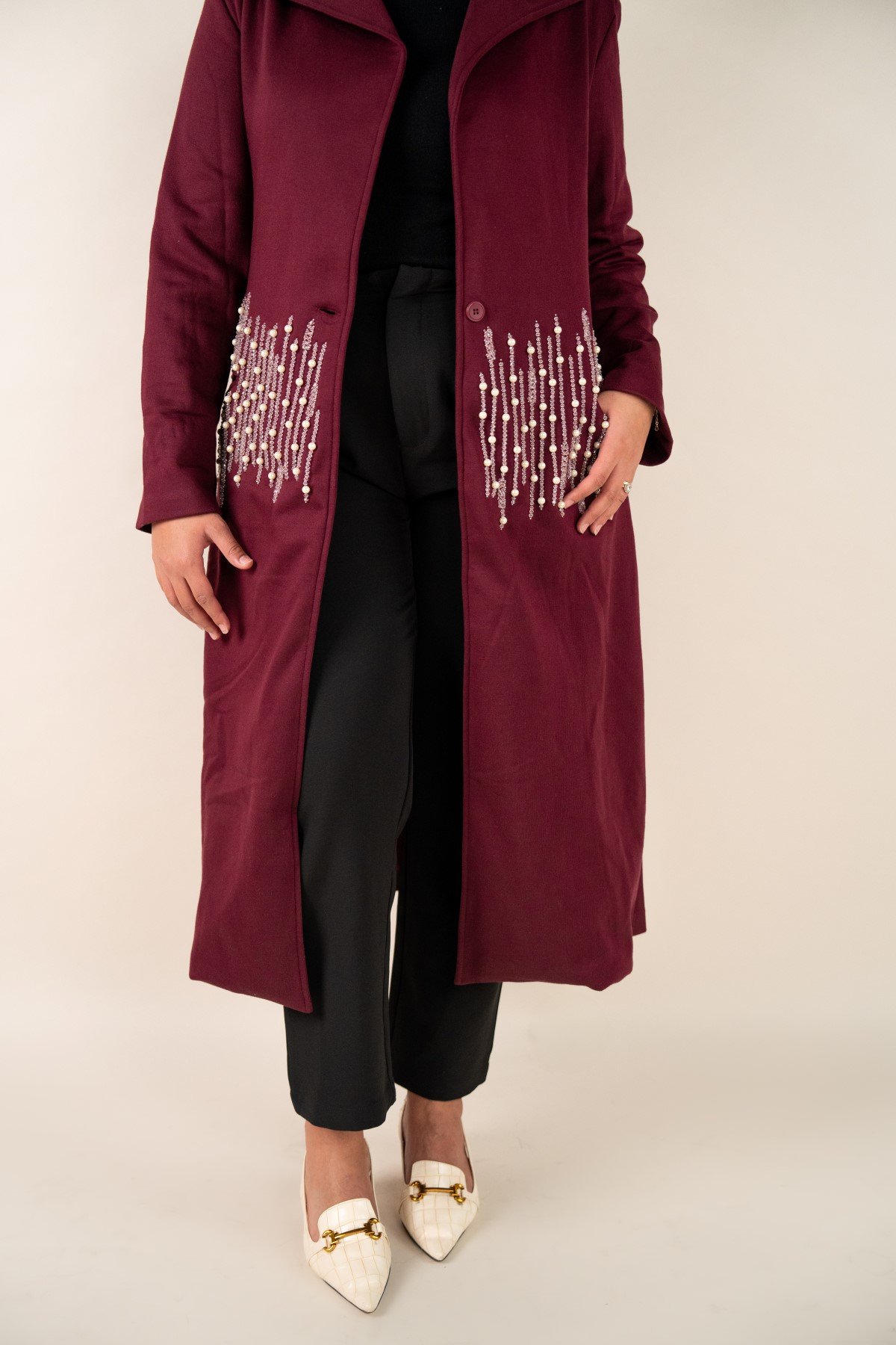 Handmade burgundy coat with a unique one-size design, crafted from premium materials for style and comfort. Perfect for any occasion.