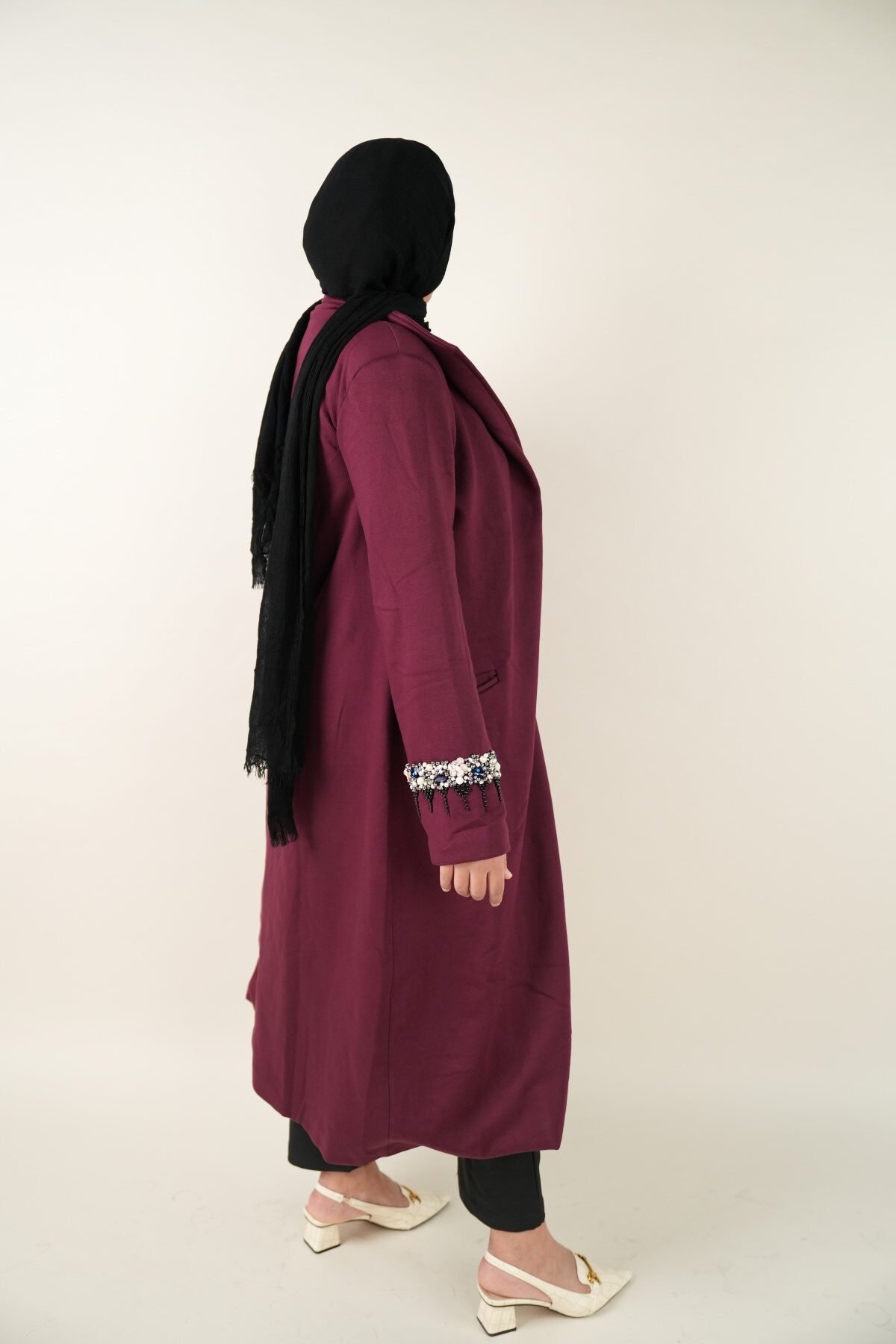 Handmade burgundy coat with a unique one-size design, crafted from premium materials for style and comfort. Perfect for any occasion.