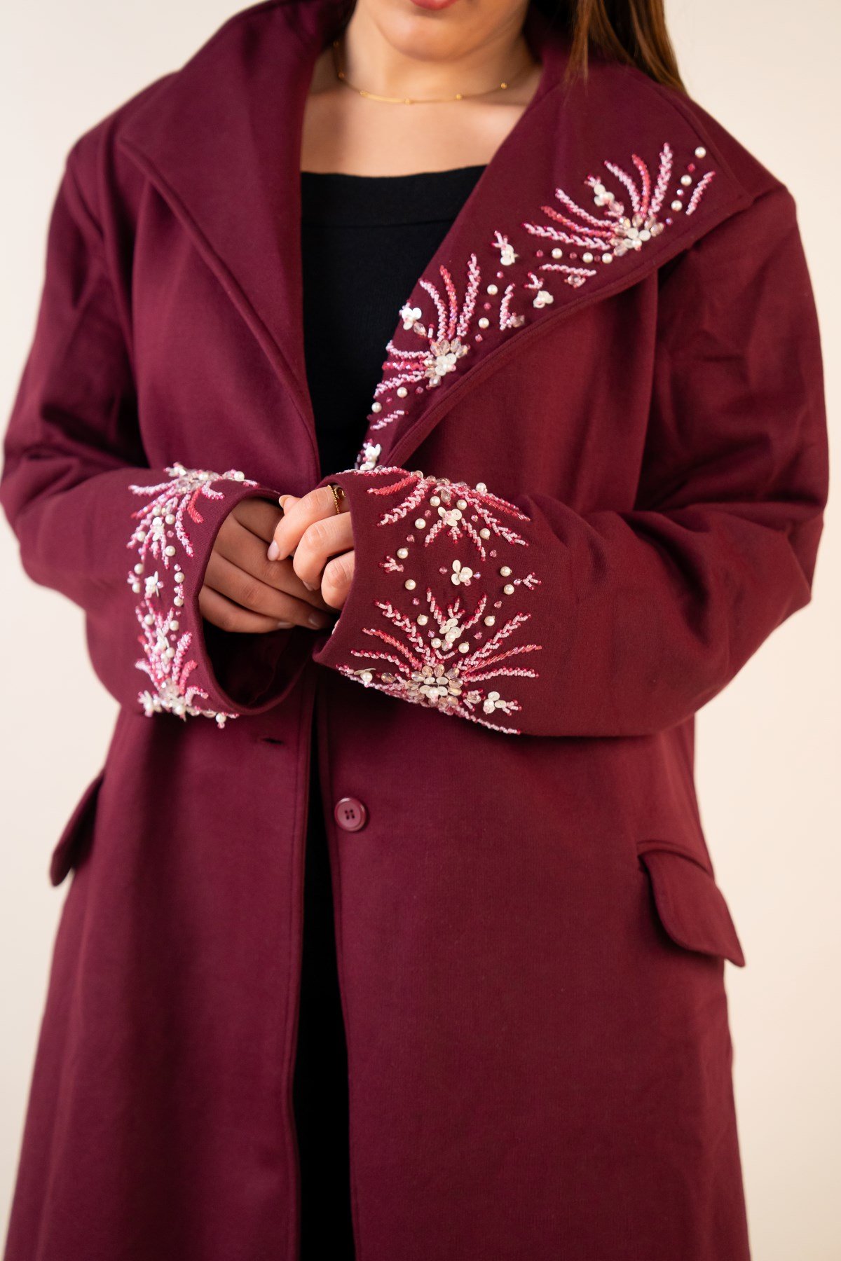 Handmade burgundy coat with a unique one-size design, crafted from premium materials for style and comfort. Perfect for any occasion.